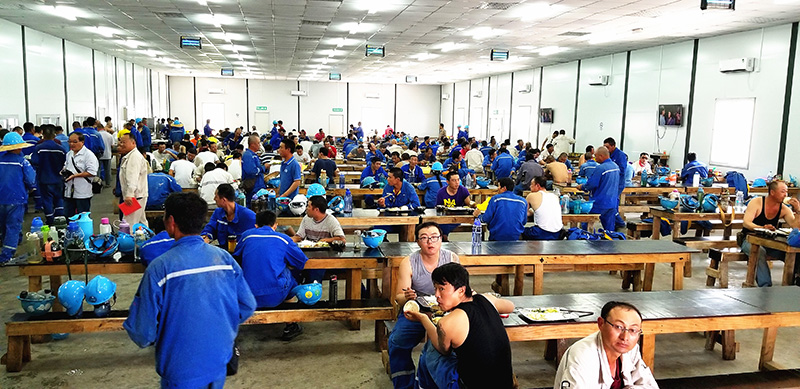 Comrade Ma Denglin, deputy secretary of the General Party Branch, is specifically responsible for the party building, ideological and political work and logistical support of the project team. At present, he has received more than 5,500 travels of to and from people. Four camps have been set up on and outside the island, namely, the western camp, camp 800, camp 1000, off- island camp and 18 large and small canteens with cooks and hygiene and cleaning staff of 60 people. Those camps can accommodate 3500 people. Currently, there are 2600 plus people (excluding foreign workers) working for the project and the peak time can reach 3197.