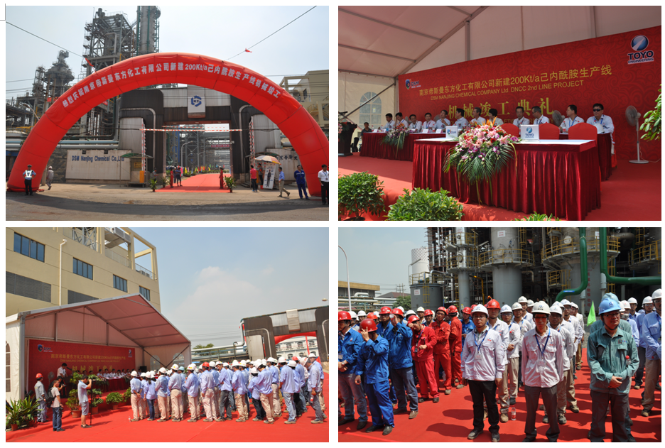 8月15日,由公司第六项目部承建的南京帝斯曼东方化工有限公司(以下简称DNCC)新建200Kt/a已内酰胺生产线全面实现机械竣工。走进现场,到处整洁明亮、彩旗招展、一片节日景象。DNCC、东洋公司以及监理单位和各施工单位列队参加了机械竣工典礼。公司董事长、总经理武光应邀出席,并在主席台就座。
