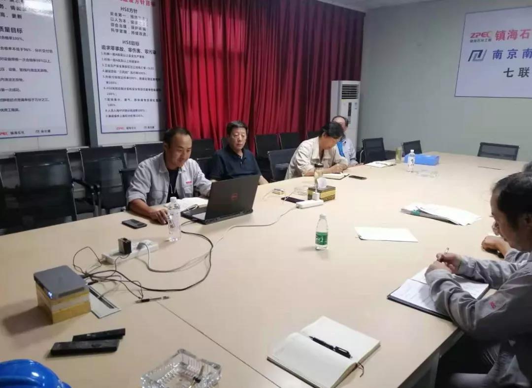 公司董事长、总经理武光深入现场勘察施工情况,在随后项目中层会上,项目负责人对揭阳项目的土建、钢结构、工艺管道、电气仪表等项目进行汇报,对锚定时间节点,详细分解任务进行说明。