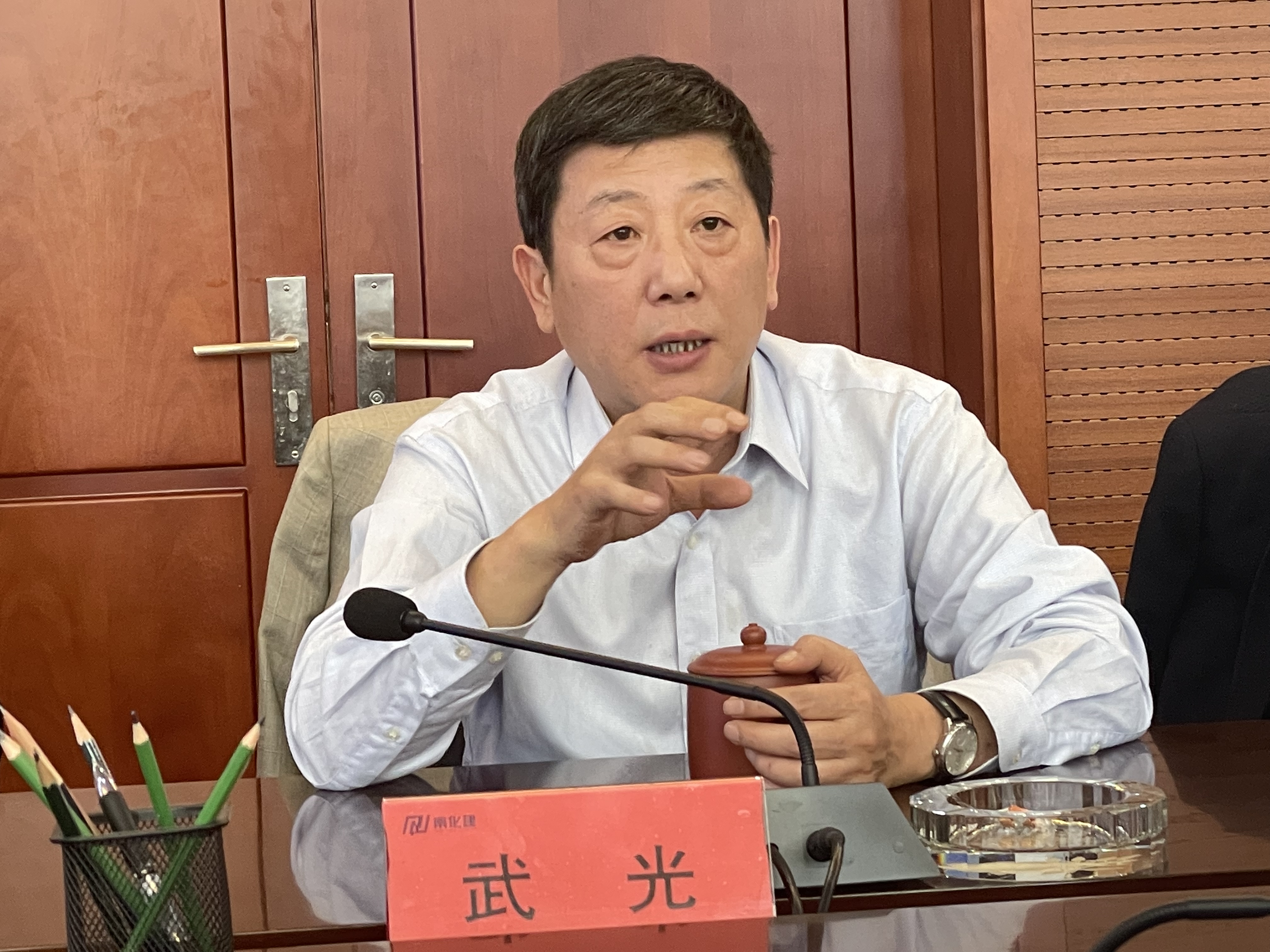 武光对王磊一行的莅临表示热烈欢迎,武光和王磊分别介绍了各自公司的发展情况与发展历程,公司副总经理夏斐就公司的主要在建项目、主要获奖项目、近年来与天辰公司的合作项目、正在实施的外资项目情况进行了详细的说明。公司副总经理甘继荣就巴斯夫等外资项目的HSE、技术质量、合同管理等方面进行介绍。