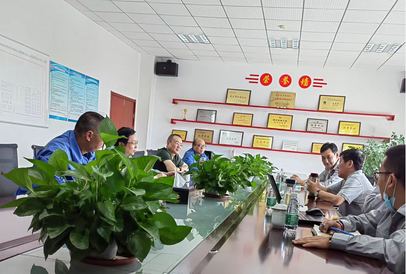 2022年5月25日,公司董事长、总经理武光到武汉新港化工新城石化码头及液体罐区续建工程项目现场视察指导工作。项目经理李茂平对武汉恒阳储运项目主要工作量、里程碑节点计划、合同执行情况、物资采购情况等作了汇报。