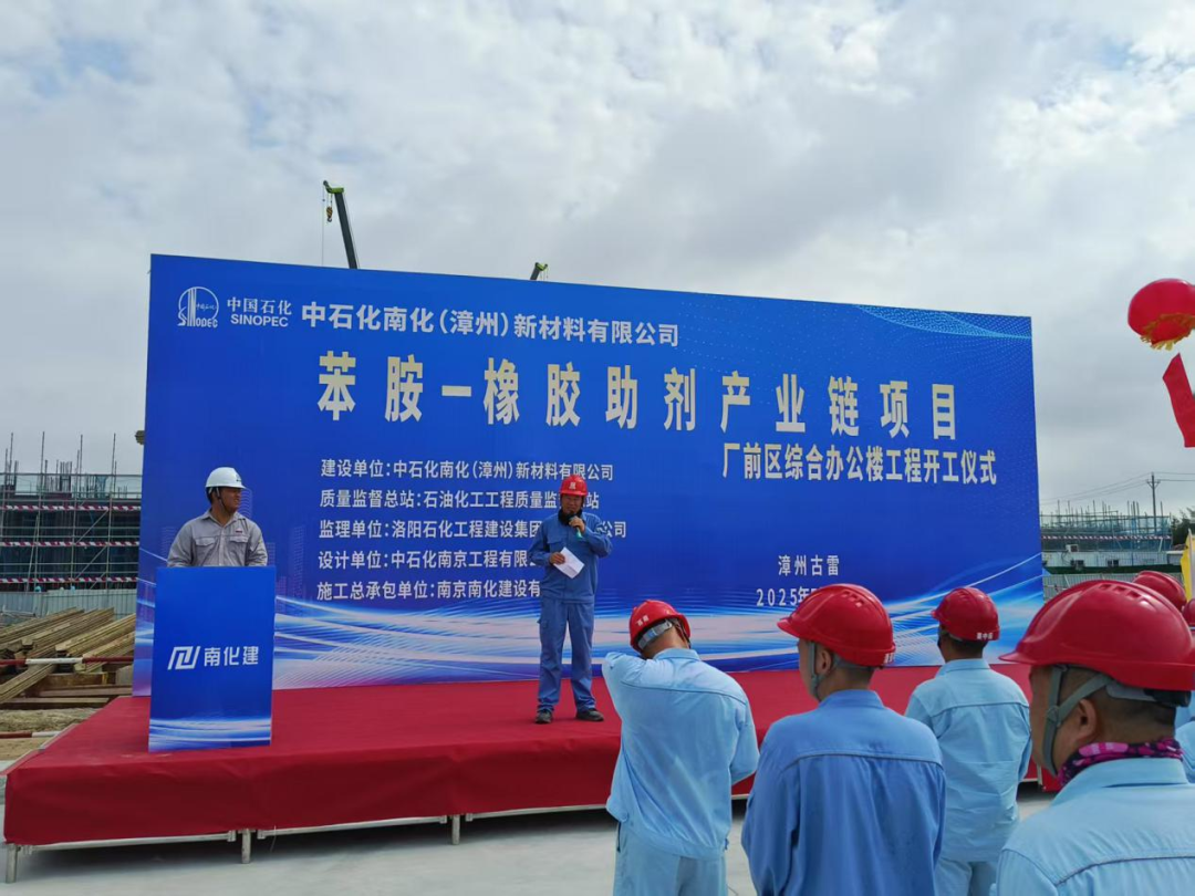 2025年5月20日上午8点58分,由公司承建的福建漳州古雷苯胺-橡胶助剂产业链项目厂前区综合办公楼工程开工仪式顺利举行。