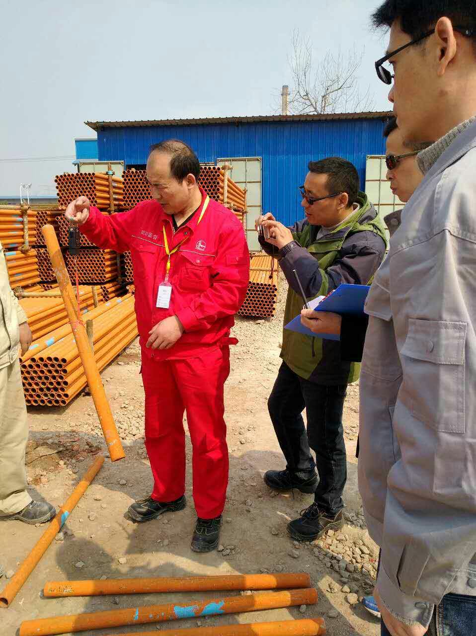 At the site, the leaders and experts checked the anti-corrosion of steel pipe and maintenance process of fasteners , and carried out a random check on appearance and weight of fasteners and outside diameter and wall sickness of steel pipe. The results satisfied all high-qualified requirements.The leaders and experts gave full recognition to the scaffold quality and the quality service provided by the material leasing branch.