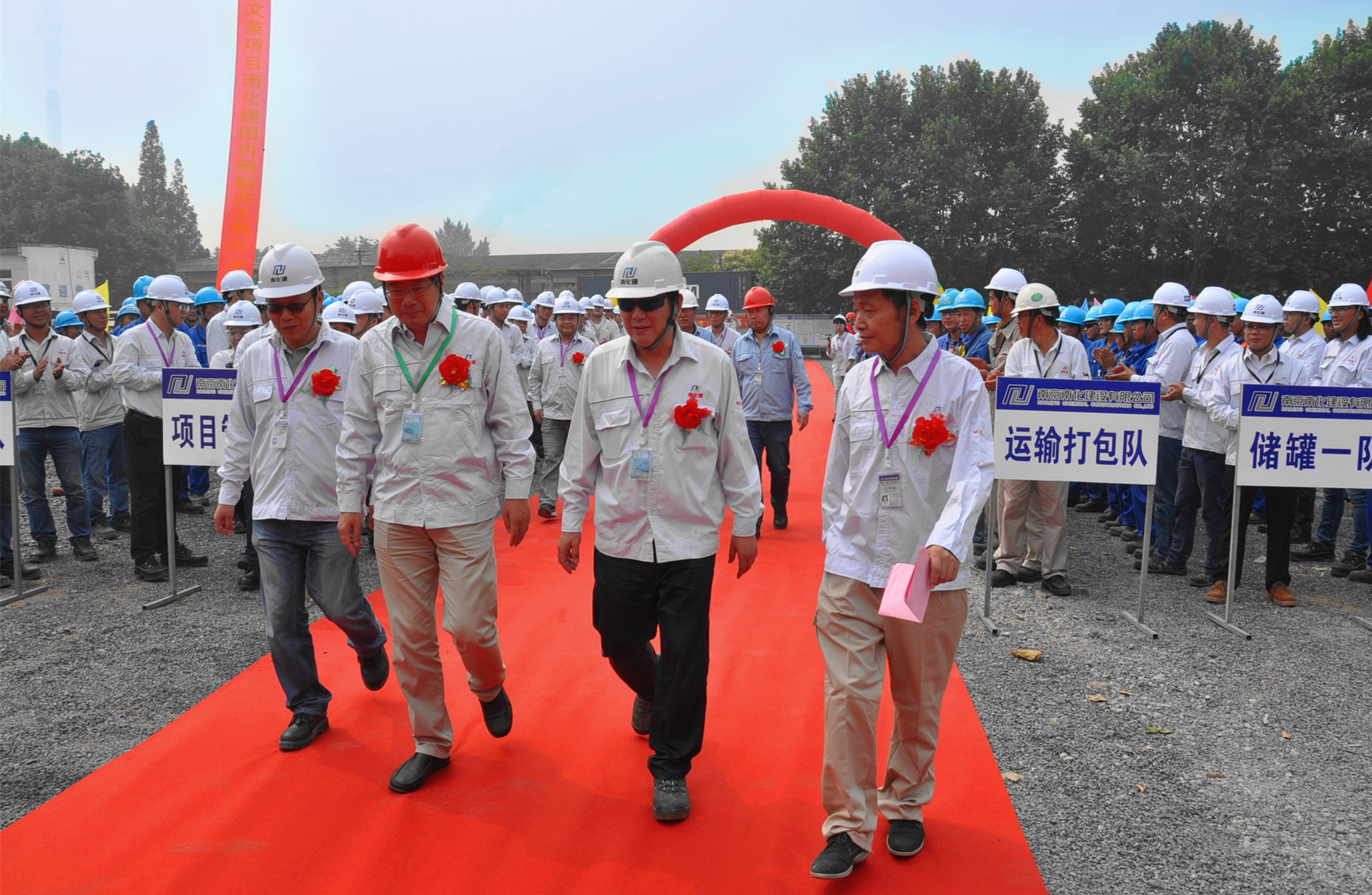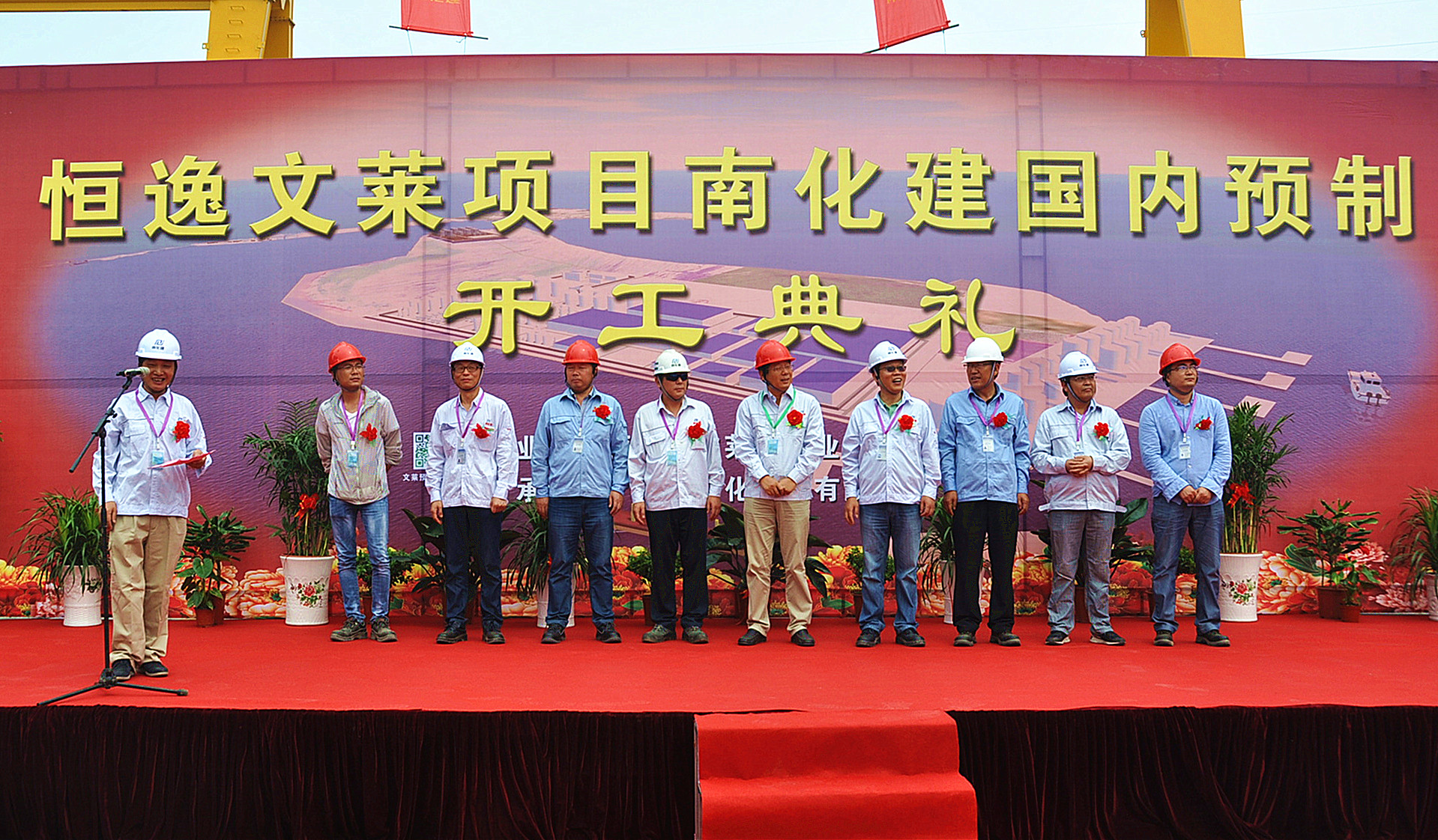 On June 15, a grand opening ceremony was hold in the prefabrication shop of Hengyi Brunei PMB Petrochemical Project at Nanjing. Chairman& General Manager Mr. Wu Guang, deputy manager Mr. Gan Jirong & Guo Peishen, chief engineer Mr. Zhao Jie and general manager assistant Mr. Zheng Jiapei attended the ceremony, together with our guests Mr. Shen Xiaofei, Mr. Li Liuyan and Mr. Gu Quancun of HENGYI INDUSTRIES SDN BHD.